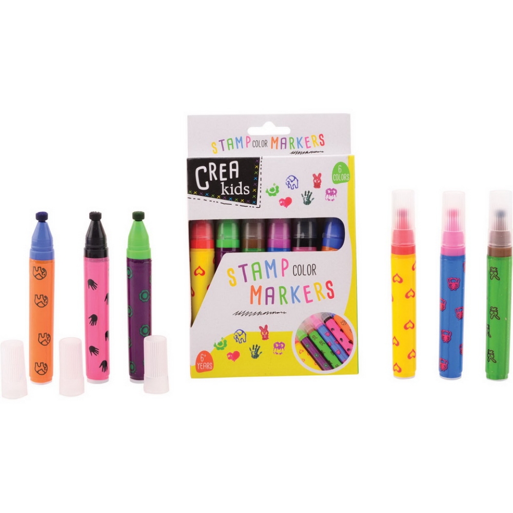 Koristele piirustuksia tai askartelutöitä hauskoilla pienillä leimoilla. Jokaisen tussin päässä on pieni leimasin, jolla voi leimata pienen kuvakkeen. Pakkaus sisältää 6 kpl tusseja.
