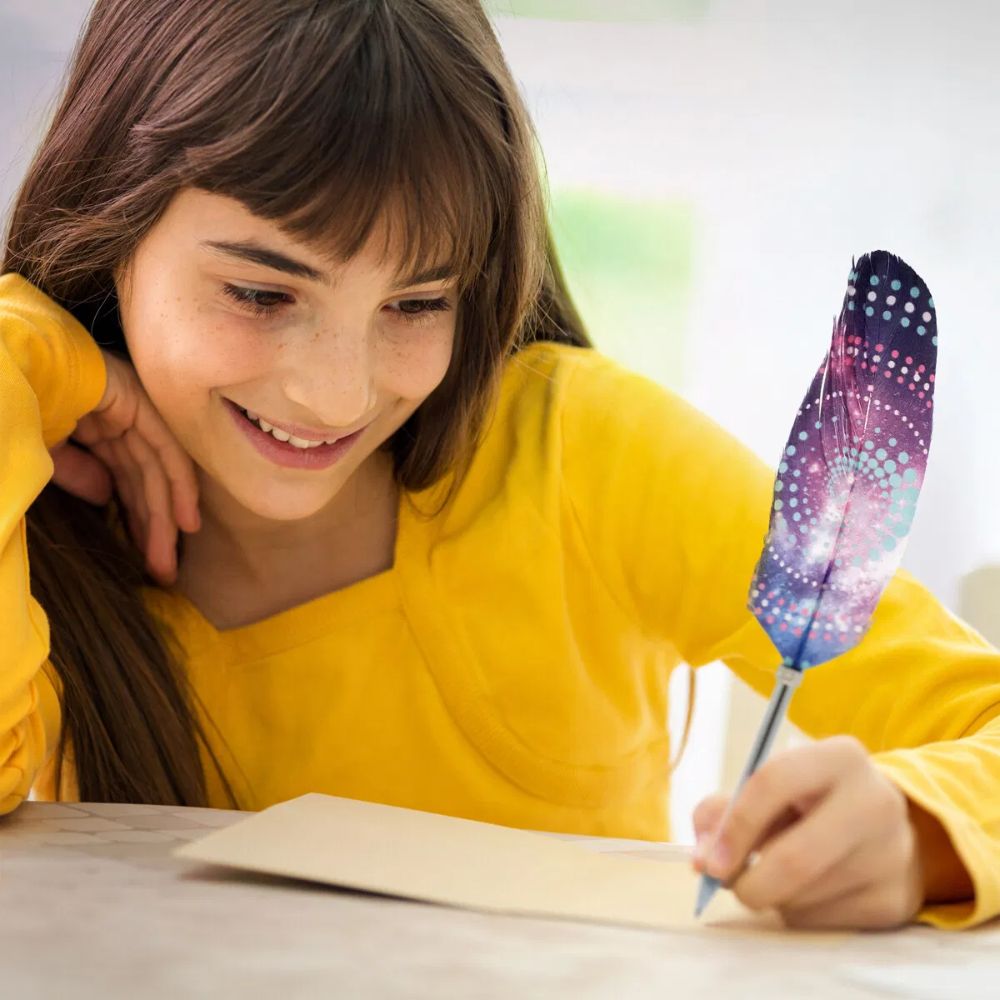 Sulkakuulakärkikynien kokoelma. Kauniita kuvioita printattuna oikeille sulille. Täydellinen valinta niin kirjoittamiseen kuin piirtämiseenkin, erityisesti niille, jotka arvostavat laadukkaita ja esteettisiä välineitä.