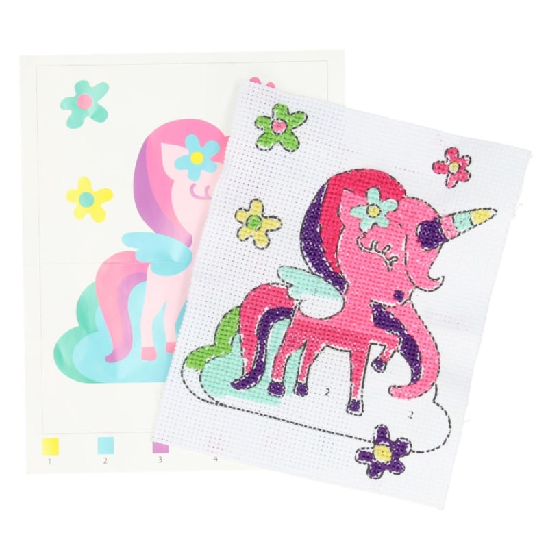 Tee tällä pakkauksella soma yksisarvisompelukuva! Ompelukuvat ovat hauska tapa harjoitella käden ja silmän yhteistyötä ja sorminäppäryyttä. Pakkaus sisältää ompelukuvan, kuusi eriväristä lankaa sekä muovisen neulan.