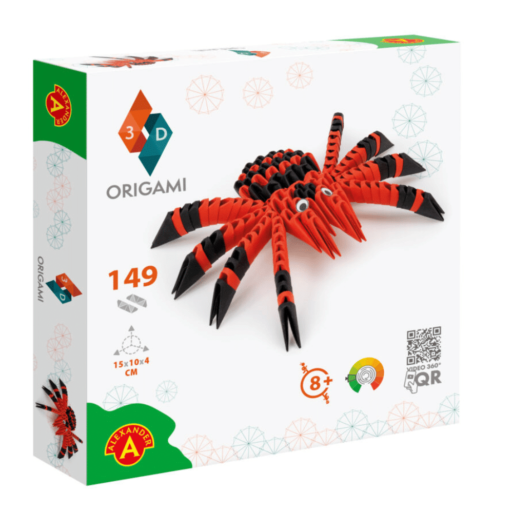 3D-origamiaskarteluhämähäkki on todellinen juhlanaihe askartelun ystäville! 3D-origamisettien avulla voit tehdä kauneimpia ja ainutlaatuisimpia kolmiulotteisia paperitaideteoksia, joita olet koskaan nähnyt. Tee origami patentoitujen moduulien, erittäin yksityiskohtaisten ohjeiden ja vaiheittaisten ohjevideoiden avulla. Setti sisältää valmiita leikkausmuotoja, joissa on selkeästi merkitty taivutusviiva. Katso opetusvideo ja ota haaste vastaan kanssamme!