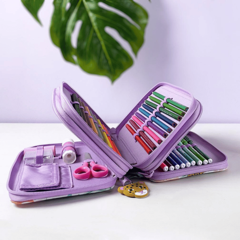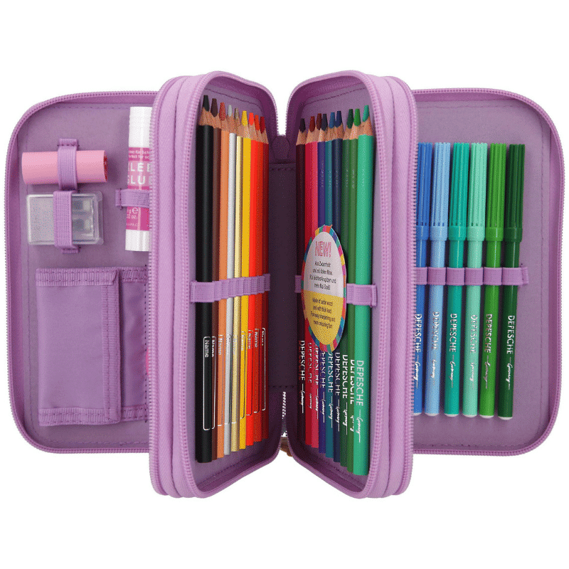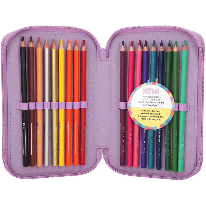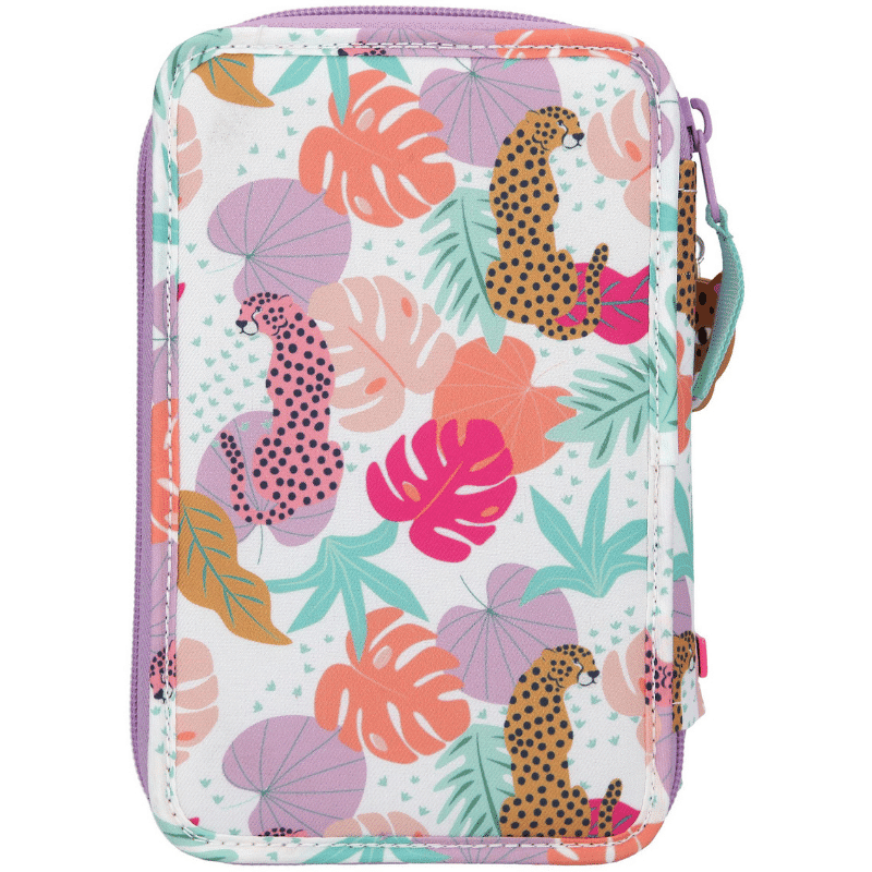 Kierrätysmateriaalista valmistettu TOPModel Urban Jungle -triplapenaali kätkee sisälleen kaiken, mitä piirtämiseen ja kirjoittamiseen tarvitset! Mukana tulee 18 kappaletta sekä puuvärikyniä että tusseja, 2 LYRA lyijykynää, viivoittimen, sakset, liiman, pyyhekumin ja teroittimen. Kolme vetoketjuin suljettavaa kerrosta pitävät tavarasi hyvässä järjestyksessä! Penaali on kuvitettu kauniisti molemmin puolin.