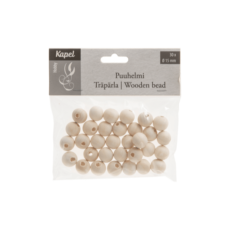 Puuhelmi 15 mm 30 kpl luonnonväri