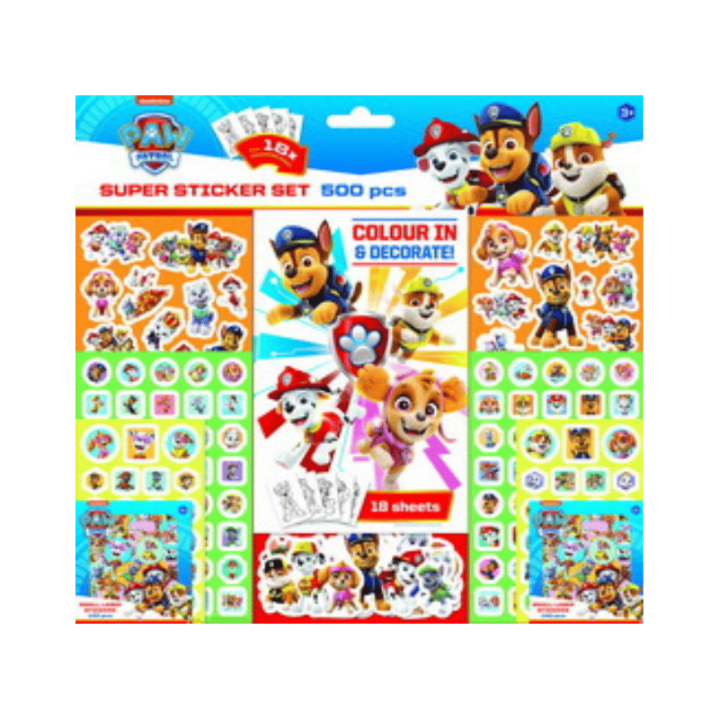 Superpaljon tarroja värikkäällä Ryhmä Hau-teemailla! Yli 500 osaa! Mukana myös 18 väristyskuvaa, jotka voit värittää ja koristella tarroilla.