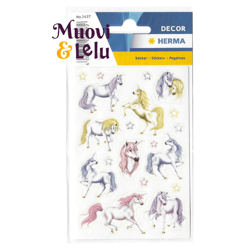 Tarrat ilahduttavat ja soveltuvat keräilyyn, koristeeksi ja askarteluun. Pakkauksessa on 18 kaunista ja satumaista yksisarvistarraa.