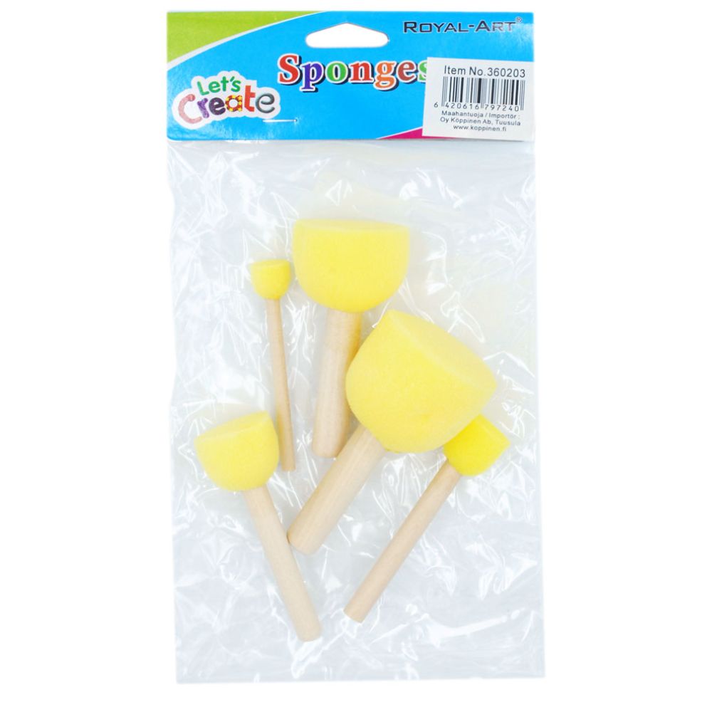 Vaahtomuoviset tupsuttimet ovat monikäyttöisiä työkaluja maalaamiseen, askarteluun ja koristeluun. Tämä pakkaus sisältää viisi erikokoista tupsutinta, jotka soveltuvat monenlaisiin tekniikoihin ja projekteihin.