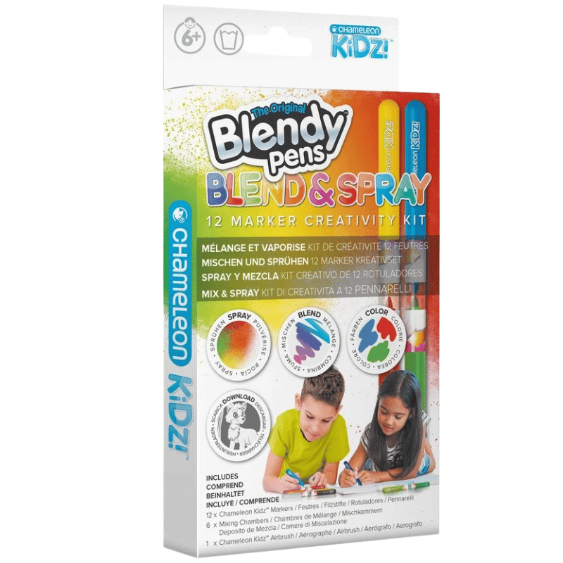 Chameleon Kidz -tusseilla voit piirtää, värittää ja spreijata! Yhdistä värejä sekoituskapselissa, niin saat upeita liukuvärejä. Voit muodostaa kymmeniä erilaisia väriyhdistelmiä! Setissä 12 tussia, 6 sekoituskapselia ja yksi airbrush.