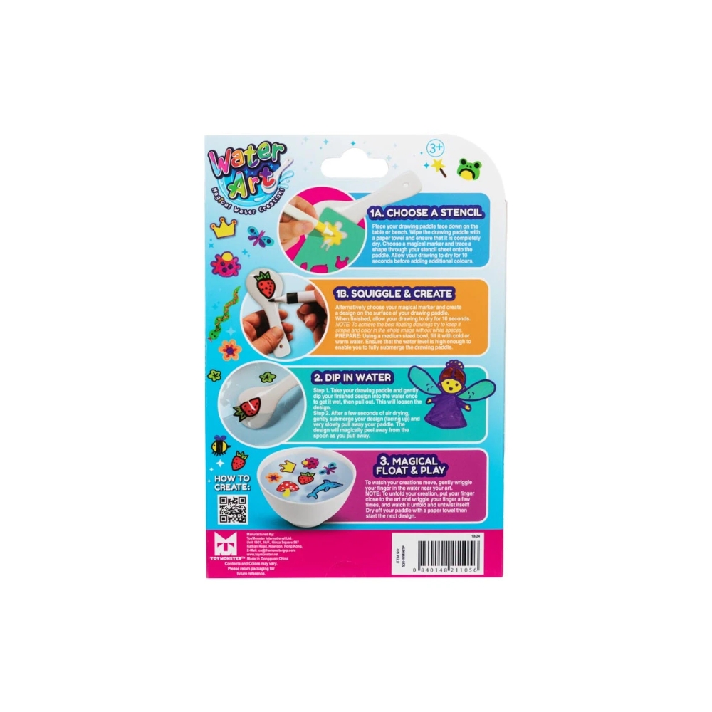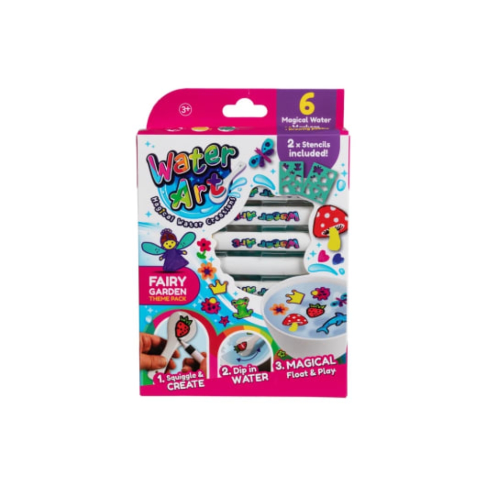 Taianomainen tapa piirtää ja leikkiä! Water Art -vesipiirustustussien avulla lapset voivat luoda kauniita keijukuvia vedellä aktivoituville pinnoille. Kuvio ilmestyy kuin taikaiskusta ja häviää kuivuessaan – aina uusi mahdollisuus piirtää ja kokeilla uudelleen.
