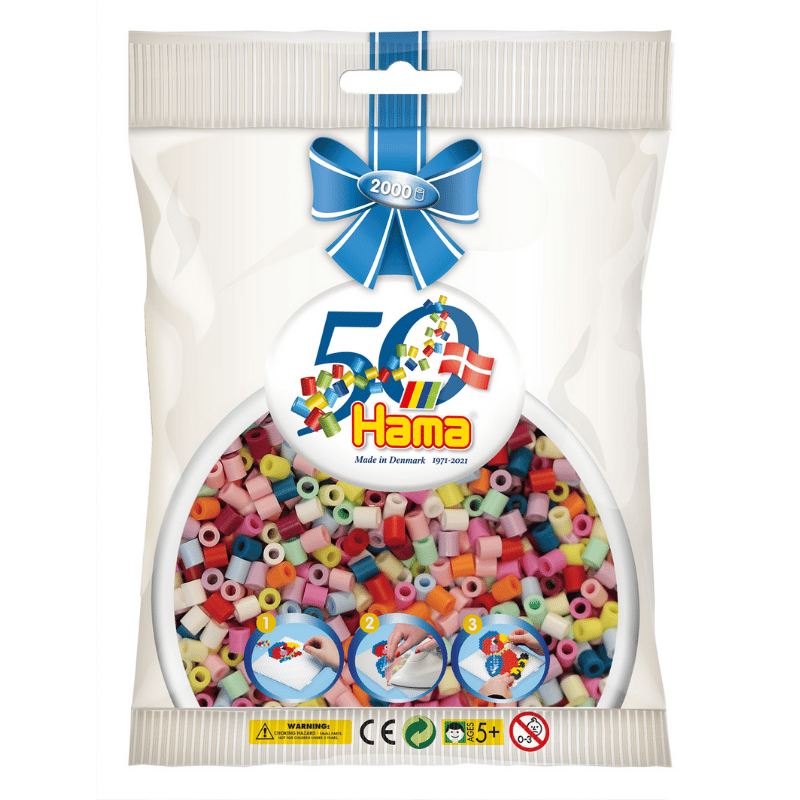 Hama helmet täyttää 50 vuotta! Sen kunniaksi julkaistiin 2000 helmen pussi täynnä ihania pastelli helmiä.