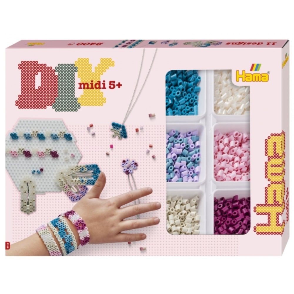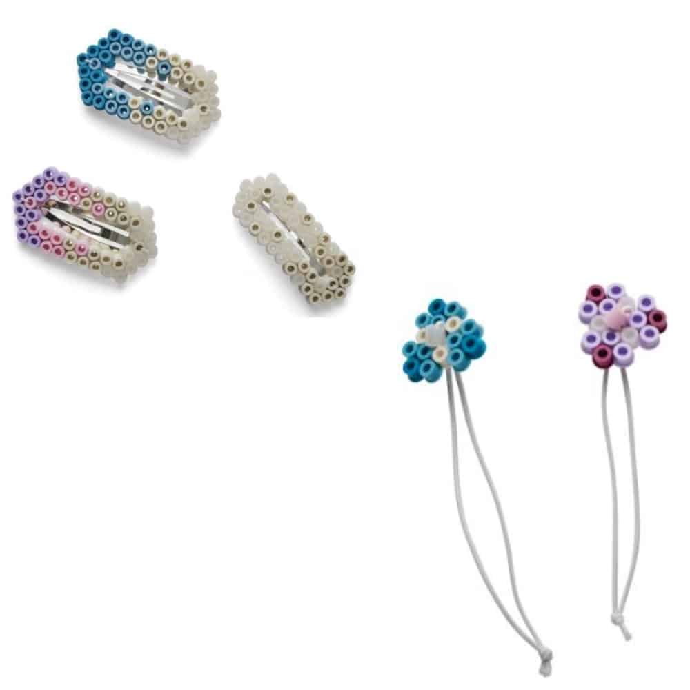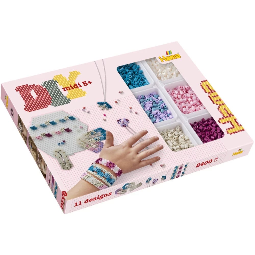 Hama-Helmet 2400 kpl korut ja koristeet – Luo tällä helmisetillä käsikoruja, kaulakoruja ja pinnejä. Mukana tulee: 2400 hama-helmeä 7 eri värissä, kuusi kulmainen alusta, kuminauhaa, 3 pinniä, silityspaperia ja ohjeet 11 erilaisen luomuksen tekemiseen. Ikäsuositus: 5+ vuotta.