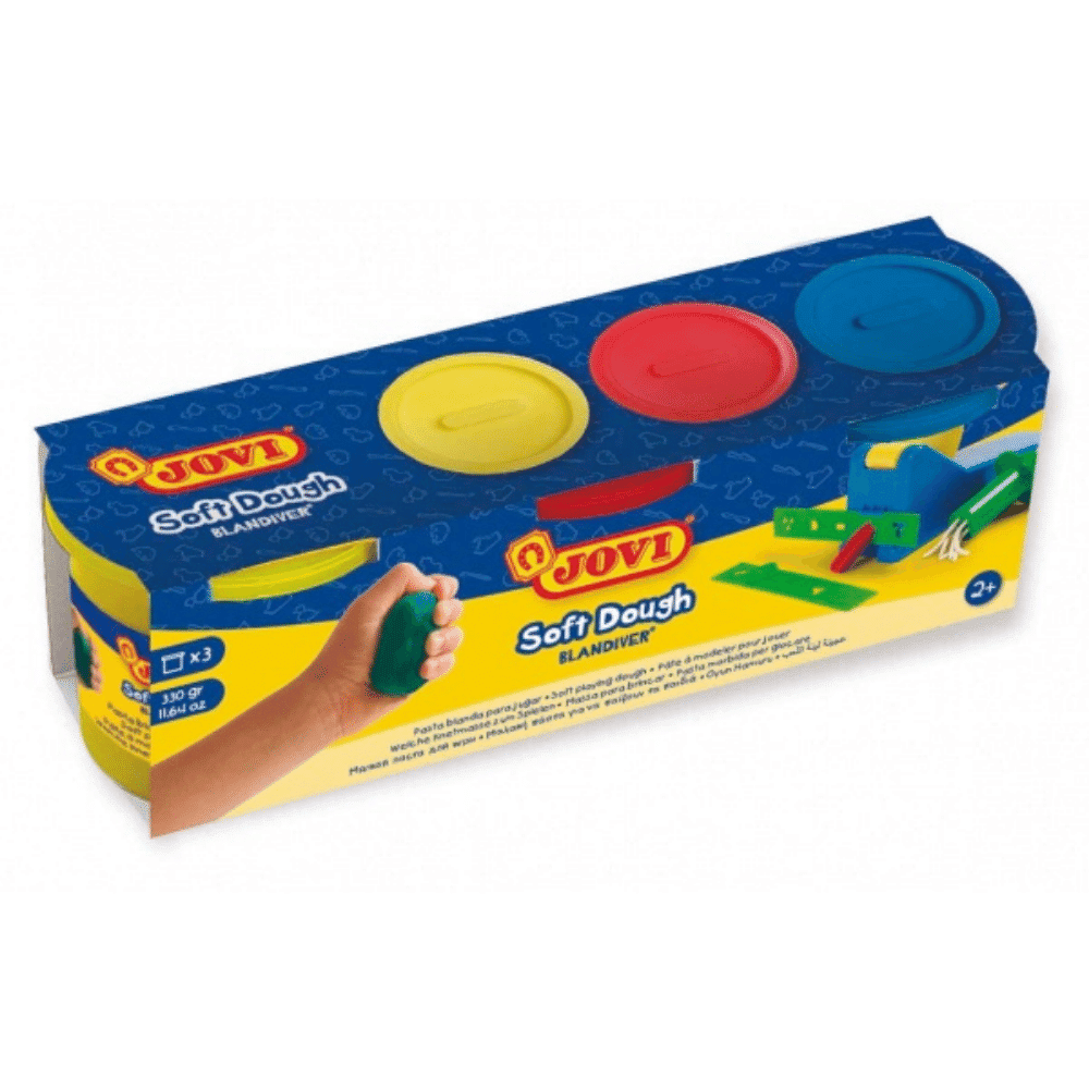 Erittäin pehmeä Blandiver Soft Dough -muovailumassa. Nyt uudessa helpossa ja näyttävässä pakkauksessa, jossa on perusvärit: punainen, keltainen ja sininen.