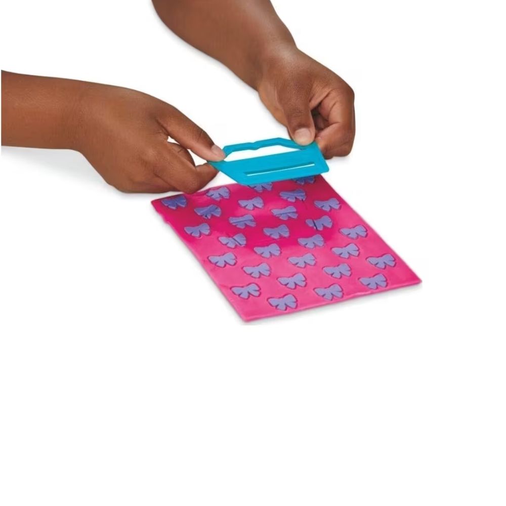 Muotoile Barbielle supersuloisia asuja ja kampauksia Play-Doh Barbie Röyhelöt ja rusetit -setillä! Mukana hiusmuotit, asustemuotit ja kaksi Play-Doh-vahapurkkia luovaan muotoiluun. Täydellinen lahja pienille muotisuunnittelijoille!