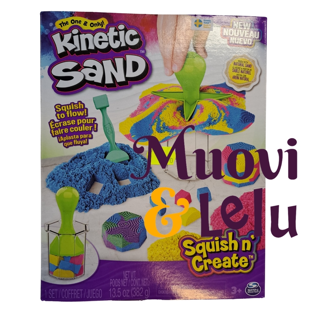 Kinetic Sand Squish N’ Create saa luovuutesi virtaamaan. Tämä Kinetic Sand -setti on täynnä kaikkea mitä tarvitset hiekkayllätysten luomiseen: noin 400 g sinistä, keltaista ja vaaleanpunaista hiekkaa. Anna sen virrata käsiesi läpi – se on niin tyydyttävää, että et voi laskea sitä käsistäsi. Suositellaan 3+ vuotiaille.