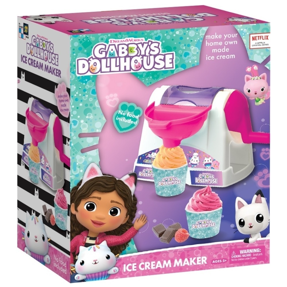 Gabby’s Nukkekoti Ice Cream Maker on upea jäätelökone, jonka avulla voit valmistaa kotitekoista jäätelöä. Lisää vain kermaa, jäätä ja suosikkimakuasi. Pakkaus sisältää jäätelökoneen, 2 paperikuppia ja ohjeet.