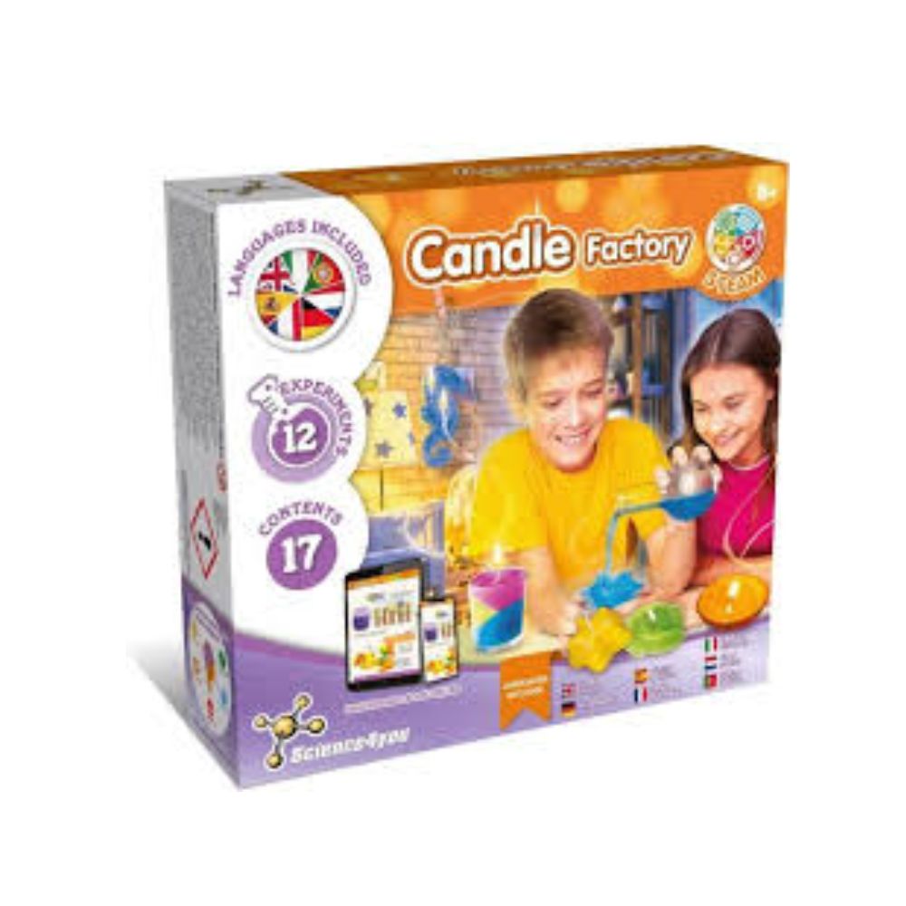 Tutustu erilaisiin kynttilätyyppeihin samalla kun askartelet värikkäitä, tuoksuvia ja hauskan muotoisia kynttilöitä. Kierrätä värikyniä, tee luovia kokeiluja ohjeiden mukaan. Tämä Candle Factory –setti tarjoaa lapsille hauskan ja luovan tavan tehdä omia kynttilöitä. Paketissa on mukana värikyniä, muotteja ja tarvikkeita yhteensä 17 osaa, sekä ohjeet 12 eri kokeeseen. Sopii noin 8‑vuotiaille ja sitä vanhemmille. Lopputuloksena syntyy värikkäitä, tuoksuvia ja muodikkaita kynttilöitä, joita voi ylpeänä esitellä omaan huoneeseen tai antaa lahjaksi. Luova toiminta tuo iloa askarteluun.