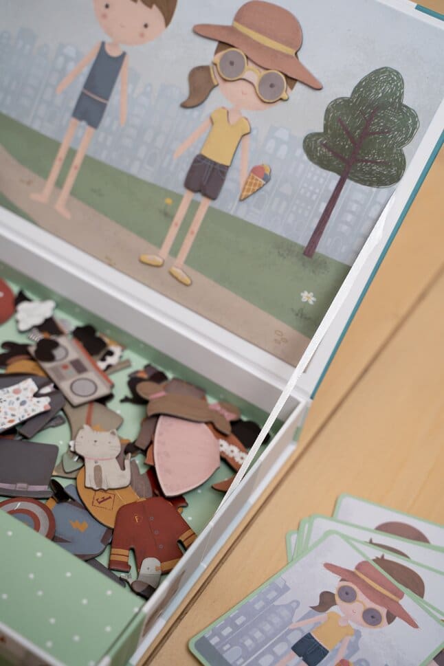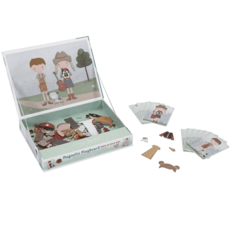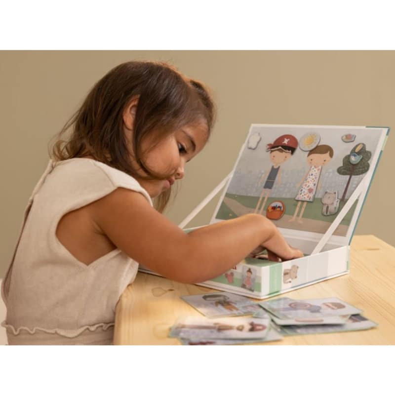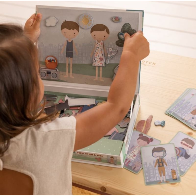 Magneettikirja on luova ja hauska suosikkilelu leikki-ikäisille. Sillä on hauska leikkiä kotona ja tien päällä! Kirjassa on kaksi hahmoa, joille voi pukea erilaisia asuja. Kirjassa on 80 pientä magneettia.