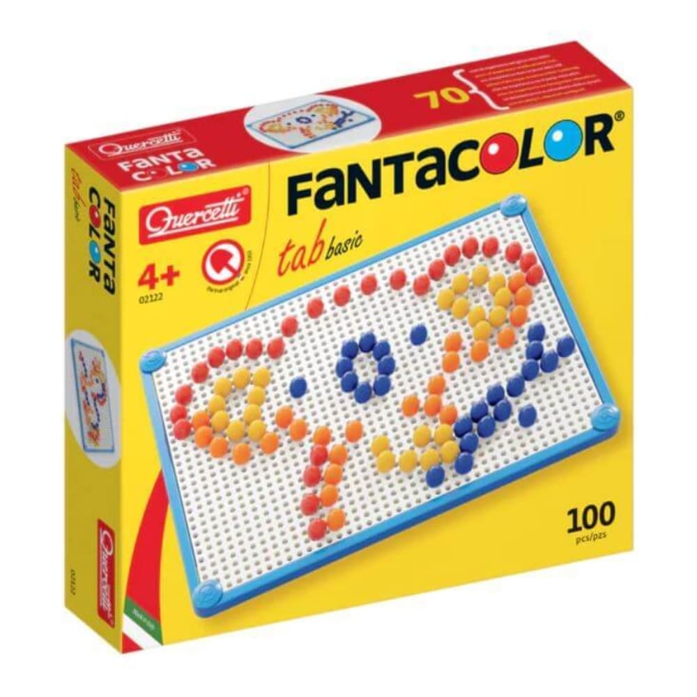Nuppitaulu, tappitaulu, mosaiikkilelu… Rakkaalla klassikolla on monta nimeä! Quercetti Fantacolor -mosaiikkitaulu on perinteinen opettavainen lelu. Värikkäistä nupeista voi sommitella hauskoja kuvia nuppitauluun. Kestävät ja laadukkaat osat on valmistettu Italiassa. Nuppimosaiikkilelun avulla lapsi voi harjoittaa mm. hahmottamista ja hienomotorisia taitoja. Iloiset ja kirkkaat perusvärit miellyttävät lapsen silmää ja lelun toiminnallisuus kutsuu leikkimään uudelleen ja uudelleen.