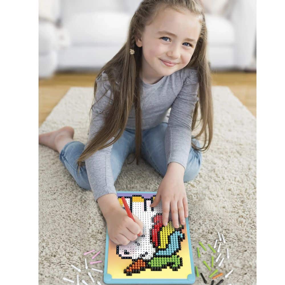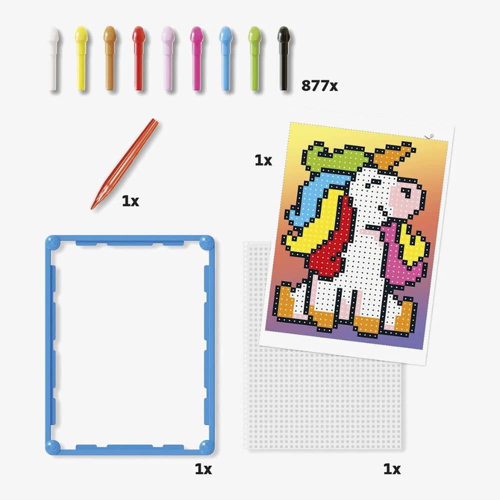 Tämä Pixel Art yksisarvinen on luova ja hauska askartelupaketti, joka innostaa lapsia taiteelliseen ilmaisuun. Tässä setissä on värikkäitä muovisia nuppineuloja, joiden avulla voi luoda upean yksisarviskuvan.