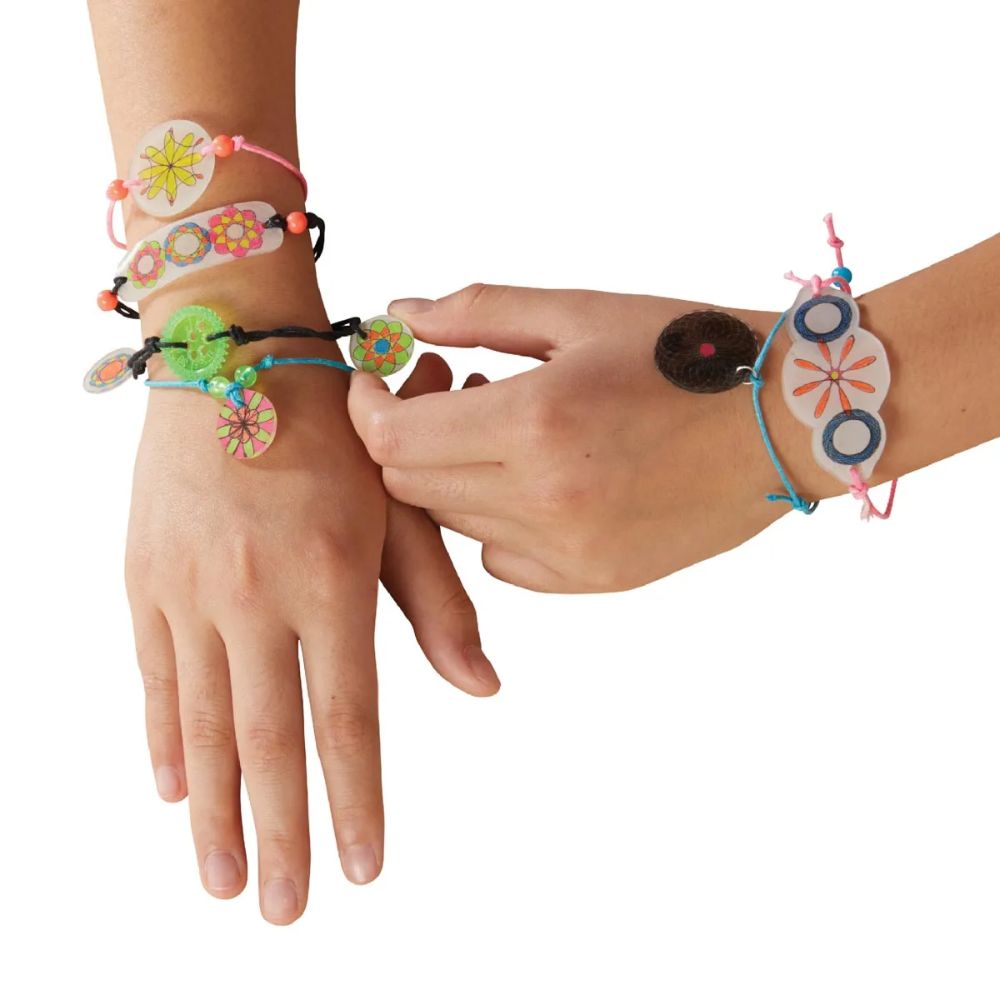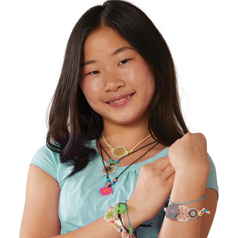 Piirrä upeita ja klassisen hienoja kuvioita Spirographin kanssa ja valmista piirroksista hienoja muovipaloja esim. koruiksi. Shrink Charms -setissä kauniit Spirograph-kuviot piirretään kalvolle, joka asetetaan matalassa lämpötilassa uuniin, jolloin muovi kutistuu.