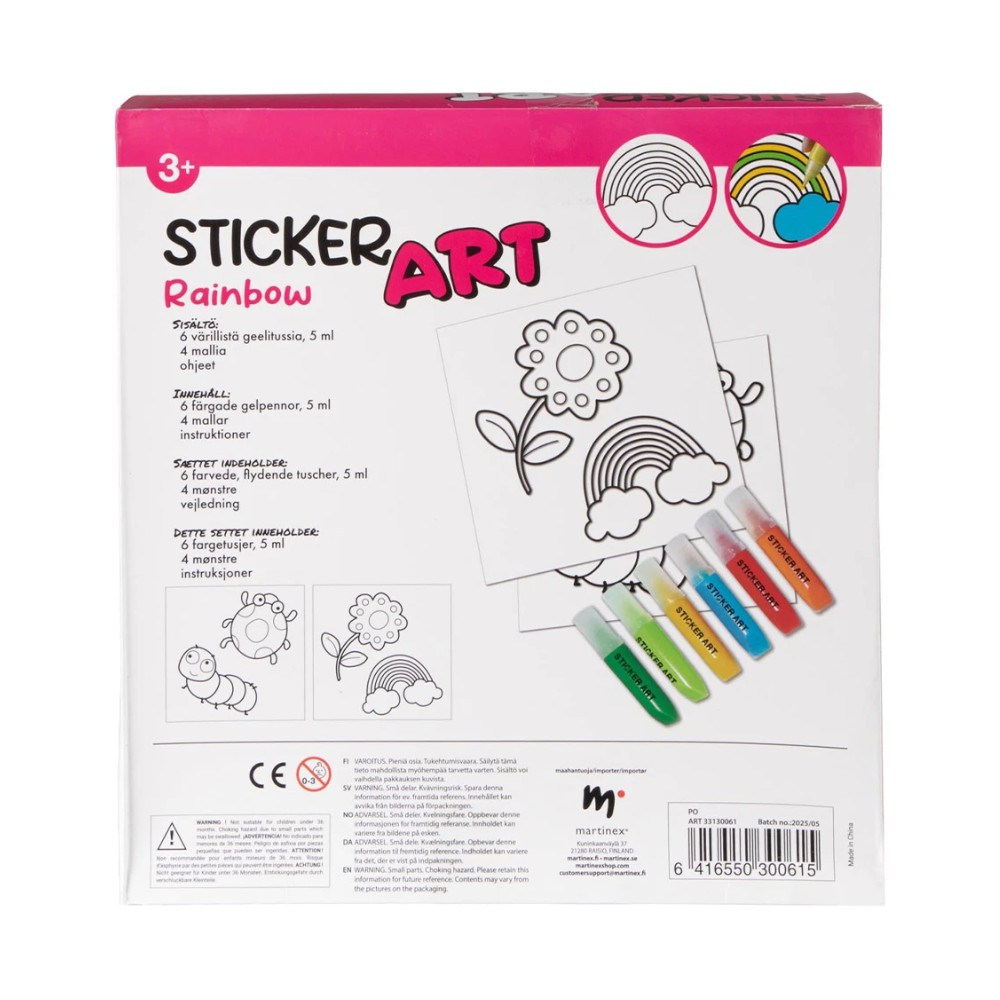 Innosta lapsesi taideprojekteja Sticker Art sateenkaari-setillä! Tämä pakkaus sisältää kaiken, mitä tarvitset värikkyyteen 🌟.