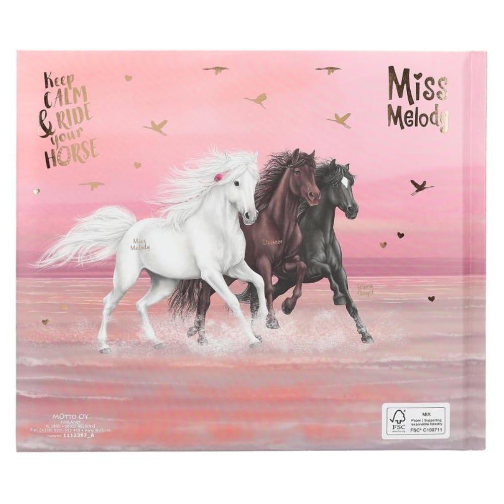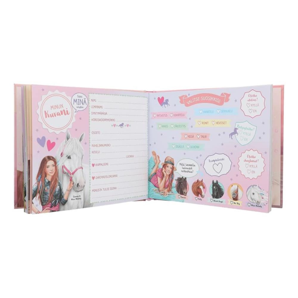 Ystävänkirja Miss Melody sisältää monta sivua ystävien sekä perheesi täytettäväksi! Sivuilla on myös muuta hevosaiheista puuhaa! Tämä hieno ja kaunis pinkki ystävä kirja koristeltu komeilla hevos kuvilla. Ikäsuositus: 5+