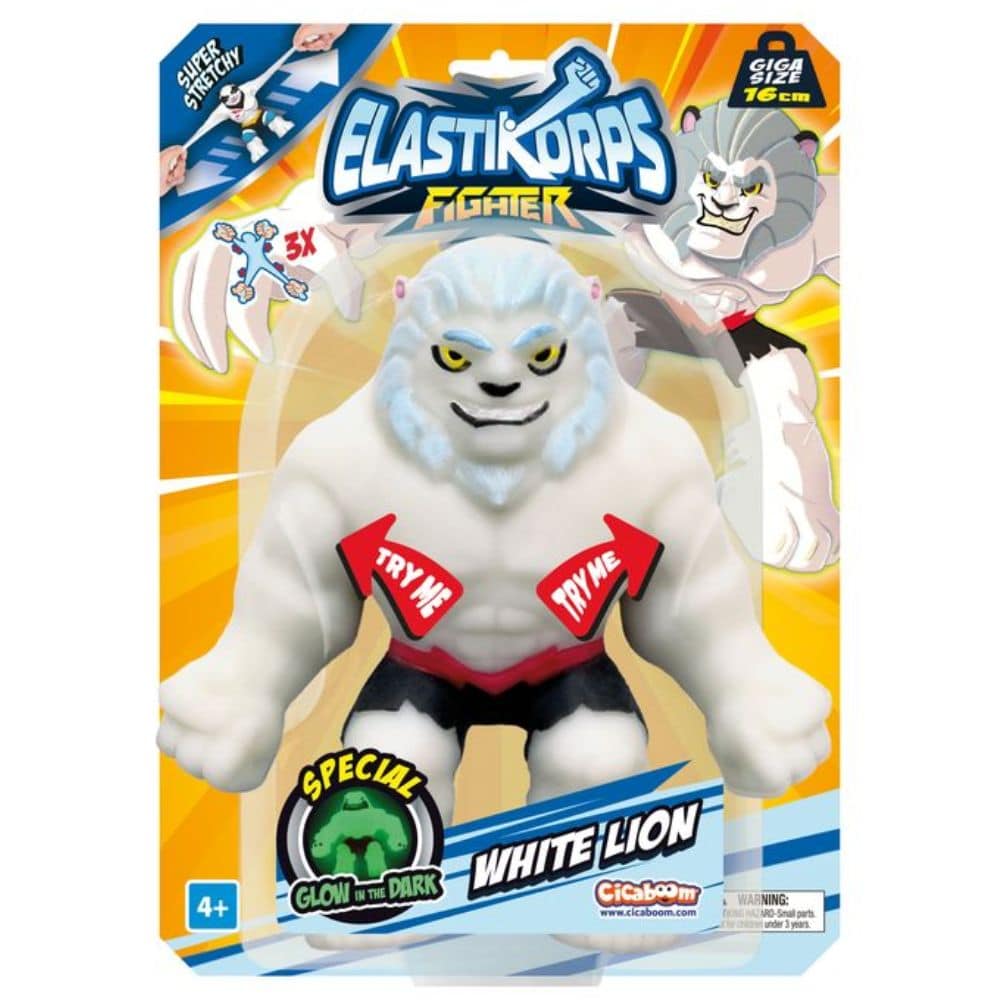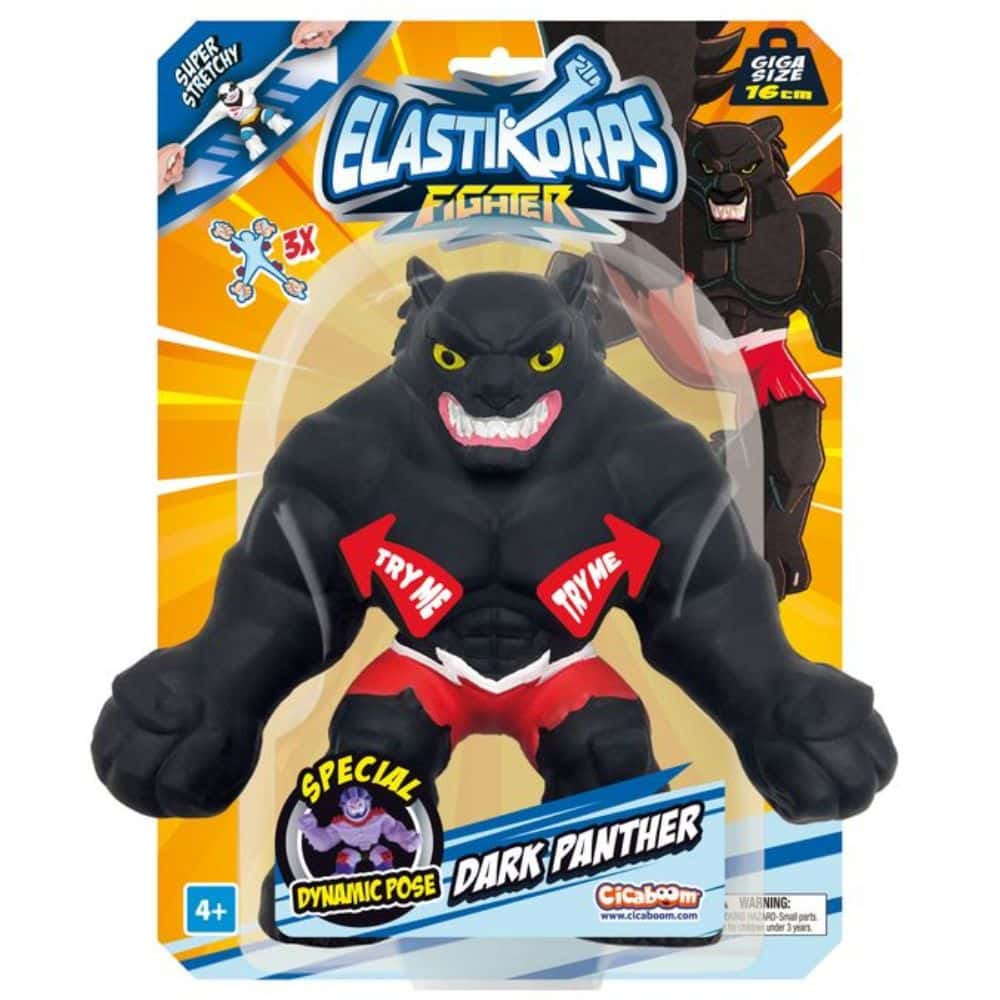 Elastikorps Fighter Giga on räyhäkäs kamppailija, jota voit mätkiä, muotoilla ja venyttää uskomattomiin mittoihin ja ravistaa takaisin ennalleen. Muksi ja paini tai aseta stressilelu komeisiin kamppailuasentoihin. Useita erilaisia (Huom! Ei pandaa, Black Panther tai Golden Tiger!).