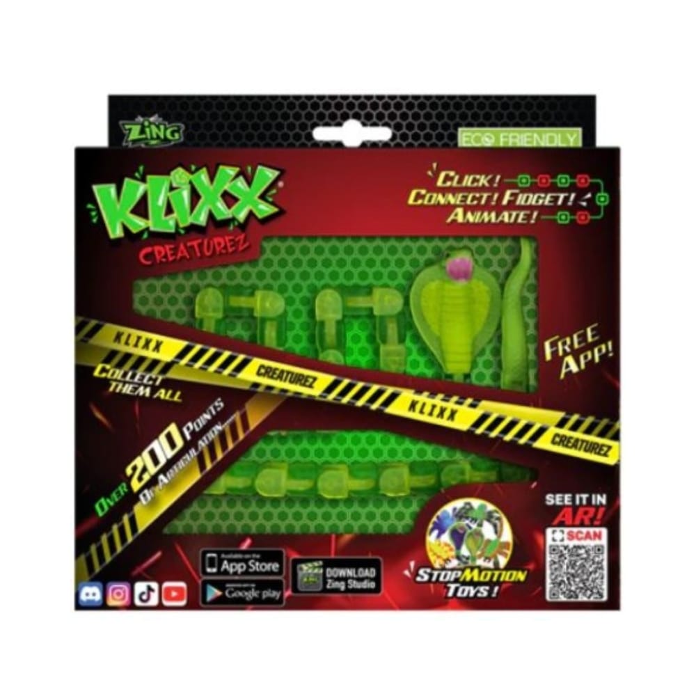 Klixx Cobra Fidget erilaisia – Klikkaa fidget-lelu yhteen ja naksauttele menemään. Kokoa Klixx Creaturez -koobrasi, pidä levottomat sormet liikkeessä ja kuuntele ihanan koukuttavia naksahdusääniä. Klixx Creaturez -hahmoista voi kuvata myös upeita stop-motion-videoita! Ikäsuositus 4+.