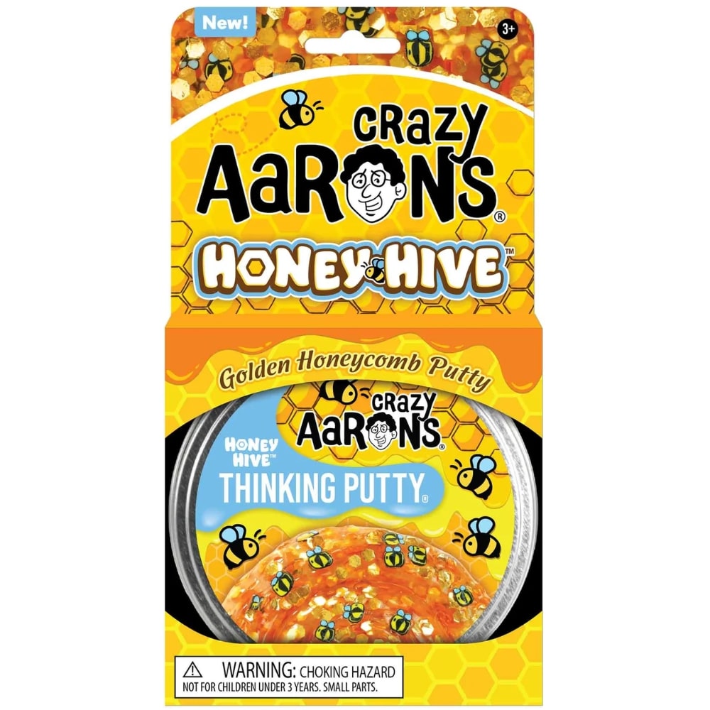 Lima Crazy Aarons Honey Hive – Tee oma mehiläispesäsi! Honey Hive® Thinking Puttyn® energisen meripihkan ja kimaltelevan kullan sävyt lumoavat sinut. Hunajakenno kimaltelee ja surisevat mehiläiset saavat sinut haluamaan tämän liman mehiläishoitajaksi.