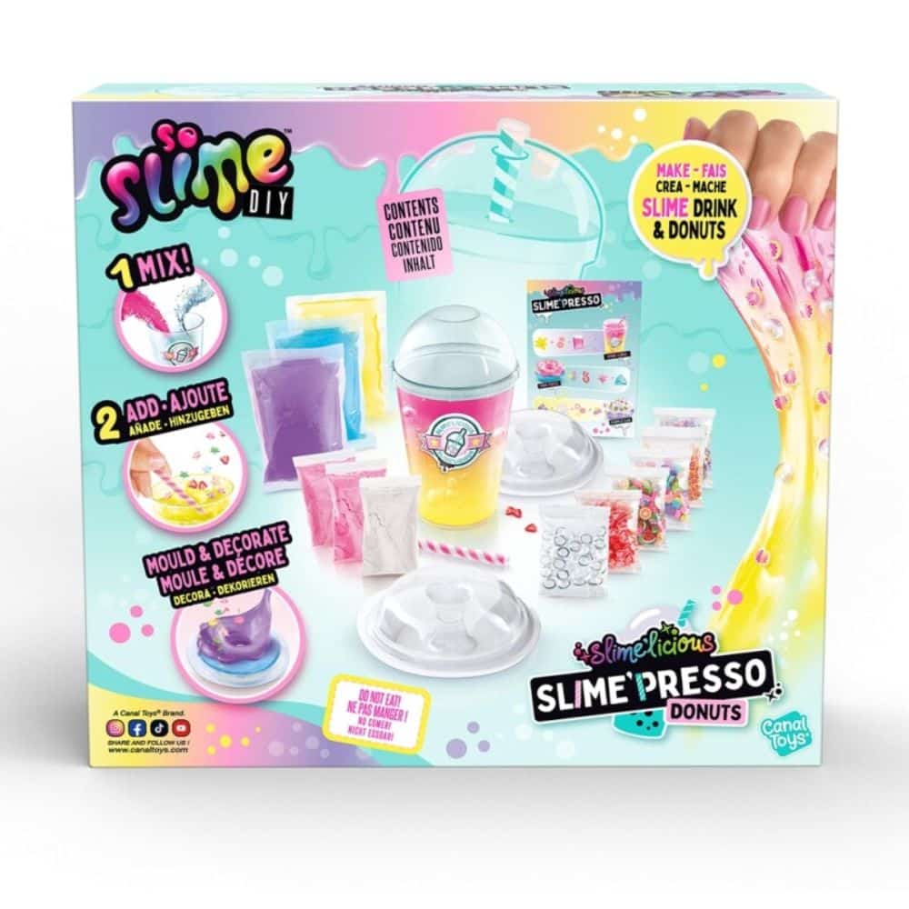 Valmista itse värikäs limaseos sekoittamalla vettä ja limajauhetta ja yhdistämällä siihen mukana oleva esivalmistettu limaseos sekä koristeita. Voit käyttää limaa myös donitsien sisällä.