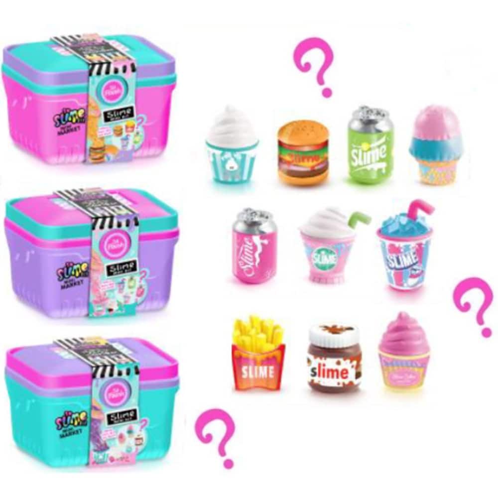 Lima So Slime Mini Market erilaisia – Monta yllätystä odottaa sinua! Herkkujen tai juomien muotoiseen ruukkuun piilotettu lima voidaan tuunata koristeilla, jolloin siitä saadaan vielä hauskempaa! Jokaiseen laatikkoon on piilotettu yllätys. Kerättävänä 12 erilaista (myydään erikseen).