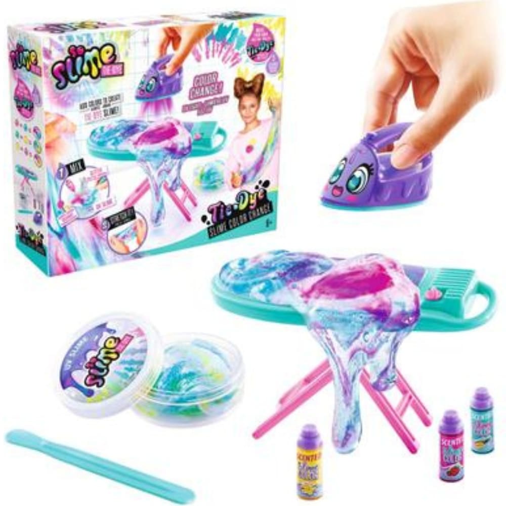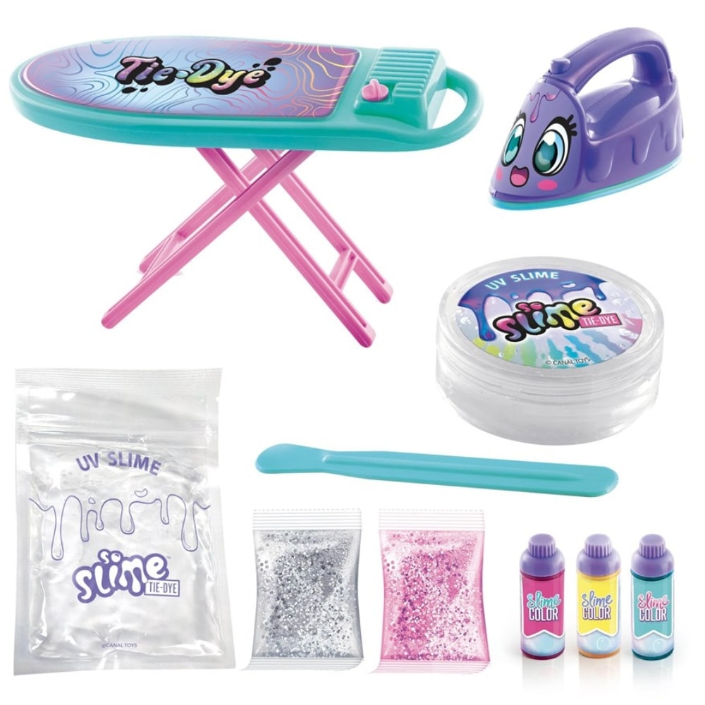 Lima Tie-Diy silityslauta ja -rauta. Yhdistä UV-limoja, tuoksuvia värejä ja glittereitä, niin saat Tie Dye värjättyä limaa. Mukana tulee leikkisilityslauta, kolme väriä, kimalletta, sekoituspuikko ja UV-valo (silitysrauta), jolla lima vaihtaa väriä! Sisältää 3x LR41-testiparistot. Ikäsuositus: 6+ vuotta.