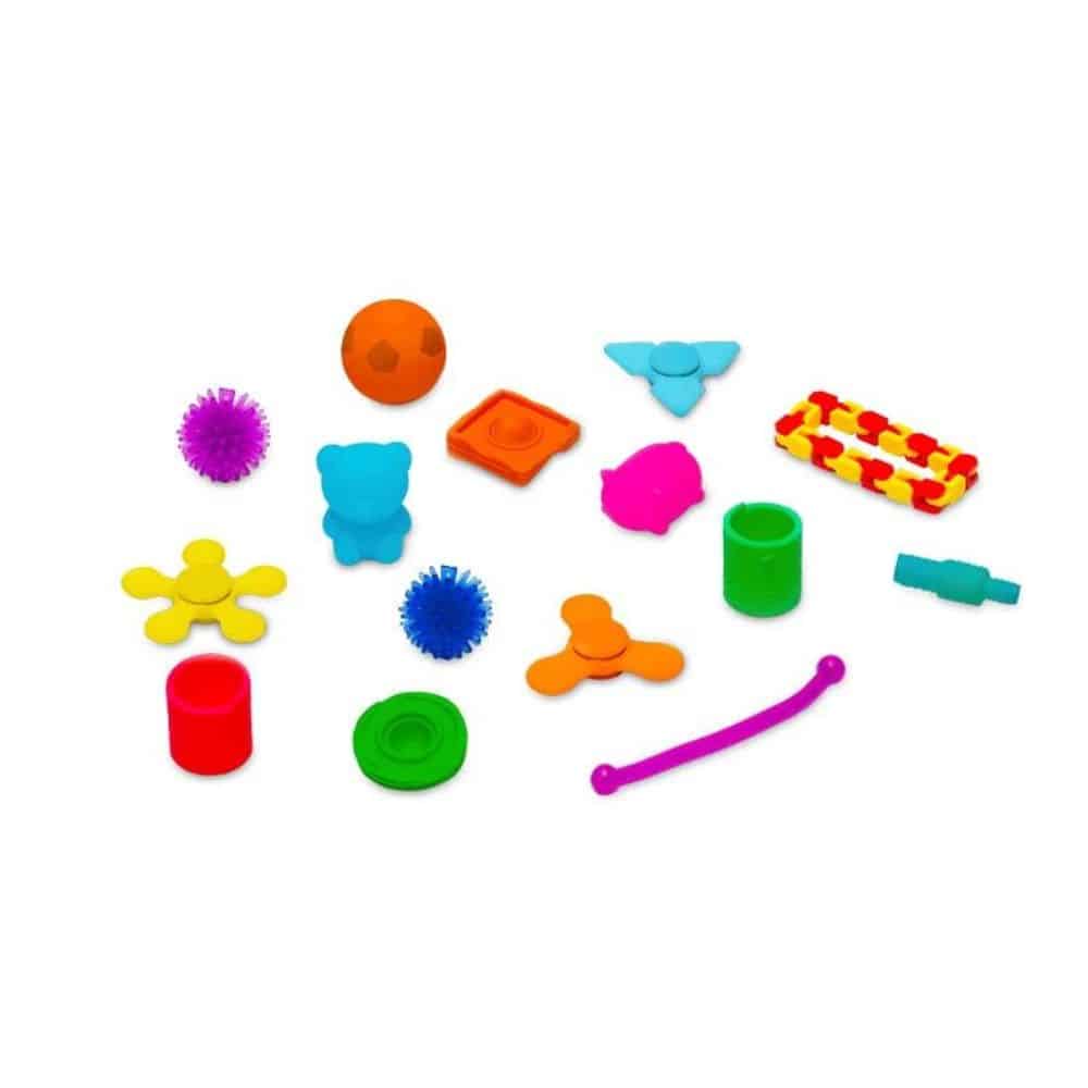 Kerää 25 erilaista hauskaa microfidgetiä! Jokaisessa yllätyspakkauksessa on 5 microfidgetiä. Yksi näkyvissä, muut neljä piilossa rasissa kannen alla! Jokainen mukana olevista tuotteista on suosittu mikroversio bestseller-fidgeteistä.