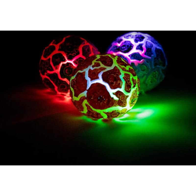 Tässä on stressipallo, joka on aivan kuin meteoriitti. Heitä sitä voimakkaasti kädestä toiseen tai lattialle niin sen valo syttyy ja voit puristella valoa hehkuvaa palloa.