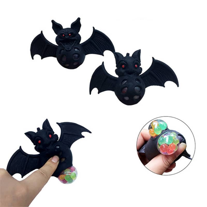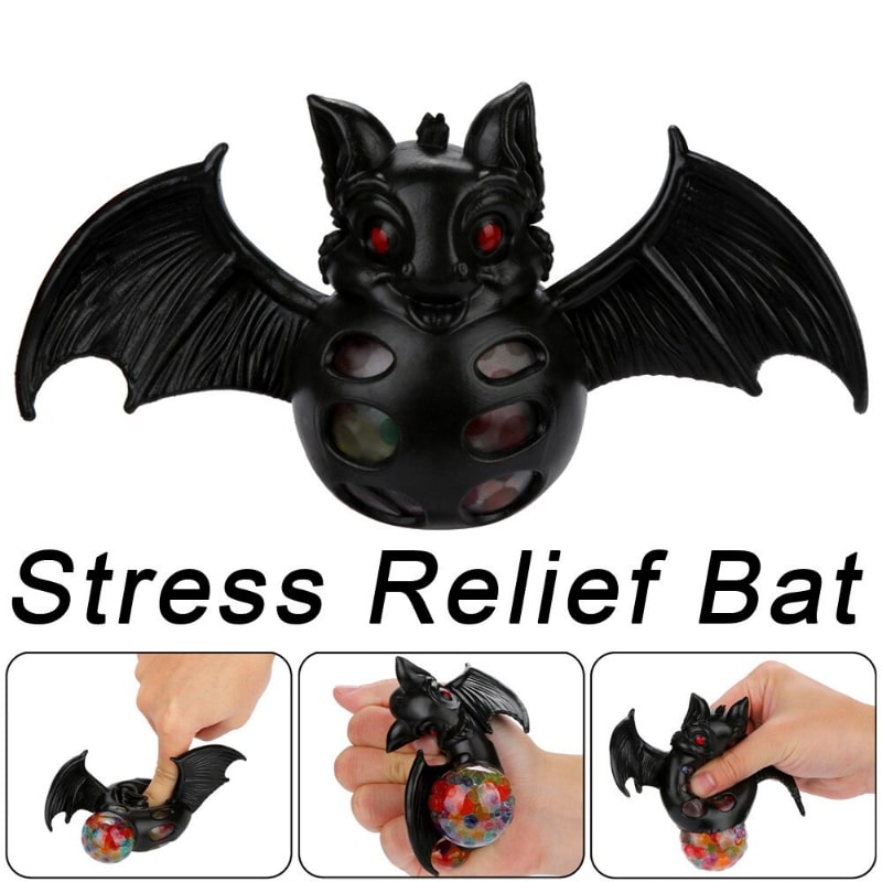 Puristele hauskaa lepakko-puristelulelua, niin siitä pursuaa geelimäisiä värikkäitä palloja erikokoisista rei’istä. Stressilelu lievittää stressiä ja ahdistusta ja auttaa keskittymään.