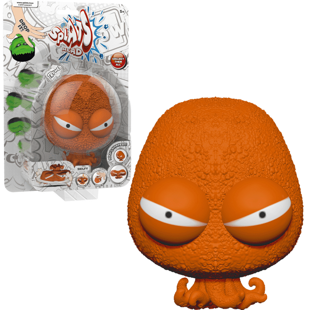 Splats Head hahmo 500 g on hauska lelu, jota voit heittää lattialle, puristaa tai muotoilla hauskoilla tavoilla hulluihin muotoihin. Päästä tunteesi esiin painelemalla hahmoa tai lyömällä sitä lujasti lattialle. Katso miten hahmon pää menee hauskasti kasaan. Hullun hauska peräti 500 grammaa painava lelu lievittää myös stressiä ja ahdistusta! Ikäsuositus: 5+ vuotta. Ei suositella alle 3-vuotiaille lapsille. Mitat: noin 11 x 8,5 cm.