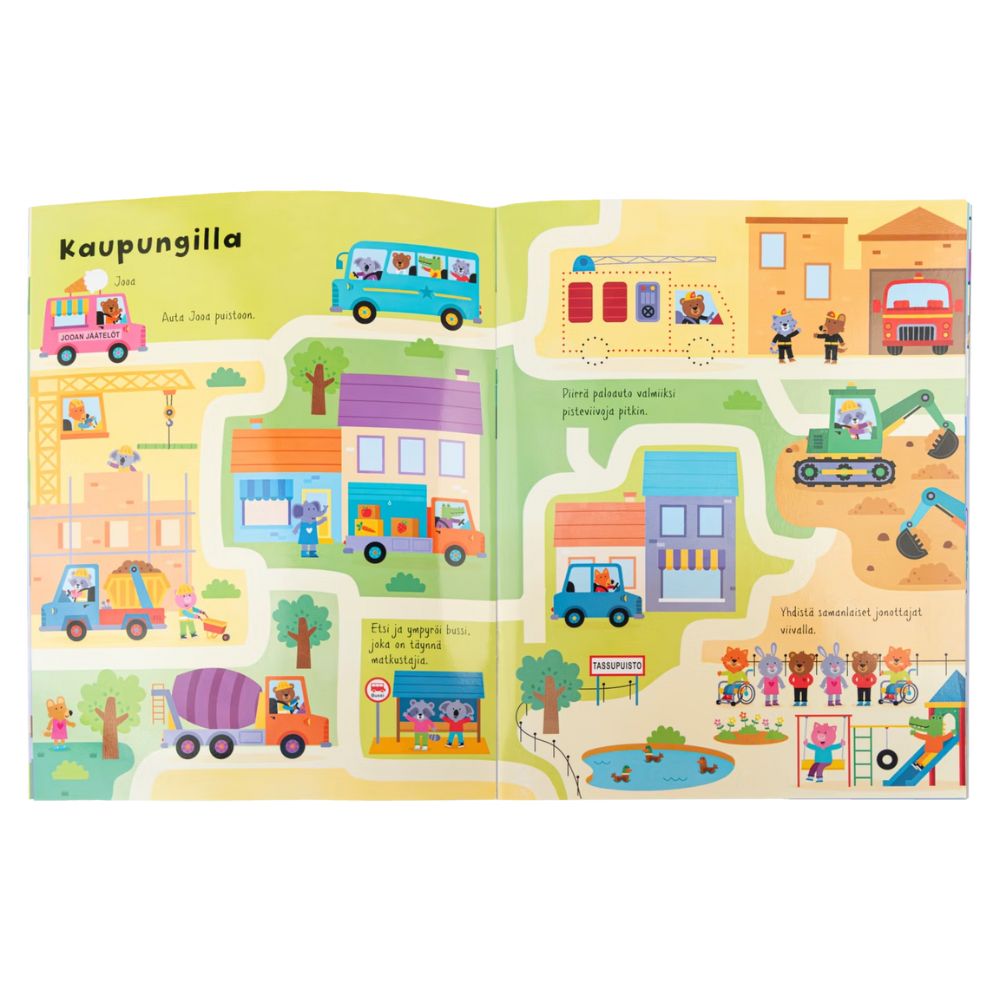 - Hauska ja uudelleenkäytettävä puuhakirja 4–6 vuotiaille, jossa seikkaillaan kulkuneuvojen parissa ja harjoitellaan sukeltamaan tehtävien maailmaan.