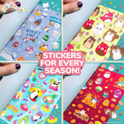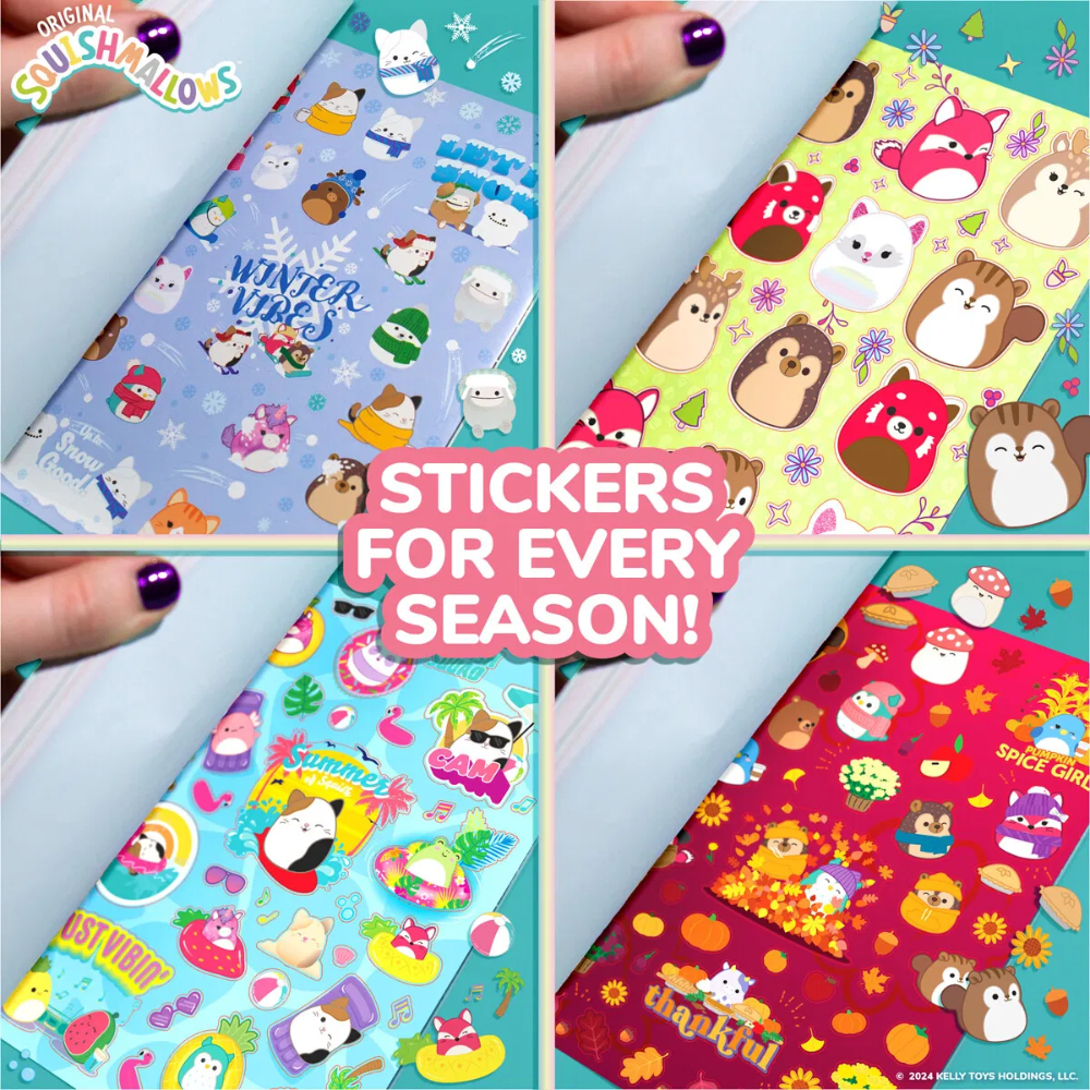 Tämä tarrakirja sisältää yli 2000 Squishmallow-tarraa. Täydellinen lahja kaikille, jotka rakastavat askartelua ja Squishmalloweja.