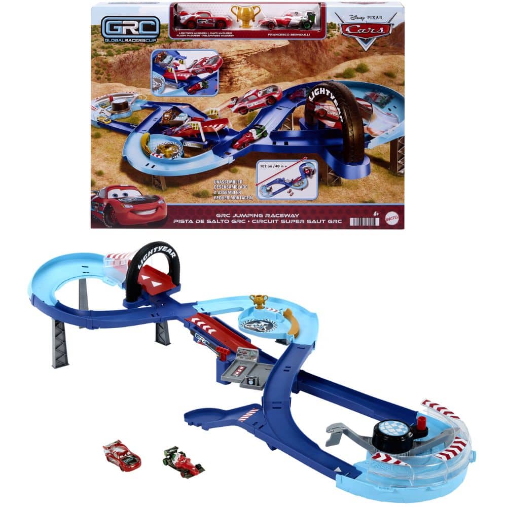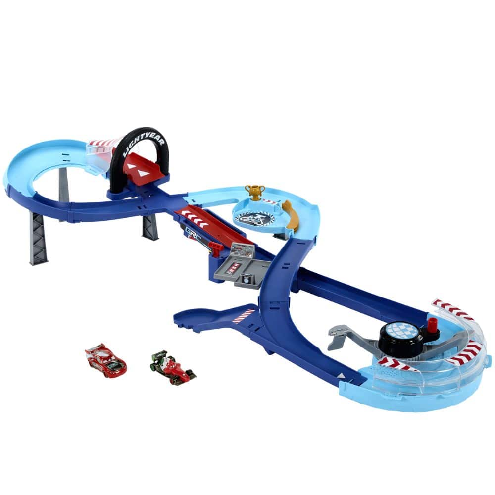 - Pakkaus sisältää radan osat ja kaksi autoa.
