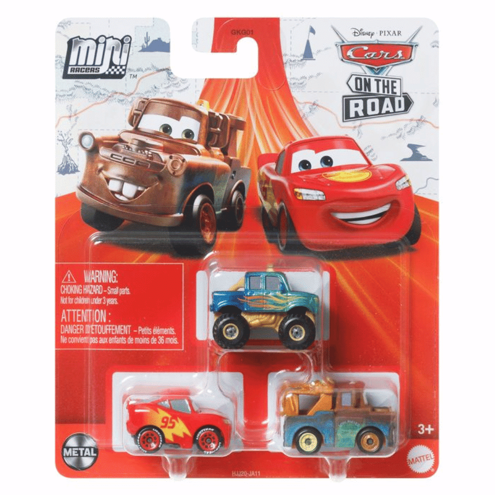 Kiidä Salama McQueenin mukana kohti vauhdikkaita seikkailuja minikoossa! Cars mini Racers auto 3 kpl pakkauksessa on kolme minikokoista, metallivalettua autoa, joista yksi saatavilla ainoastaan näistä seteistä. Ikäsuositus yli 3-vuotiaille.
