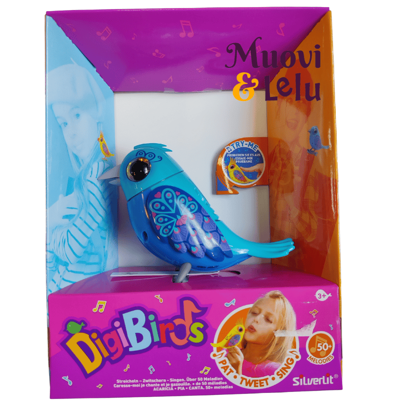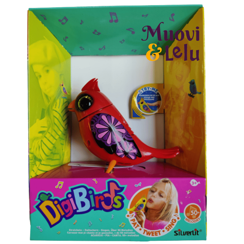 Värikäs Digibirds Silverlit -lintu laulaa ja liikkuu aivan kuin oikea lintu! Lintu osaa laulaa yli 50 melodiaa! Linnun korkeus on noin 8 cm.