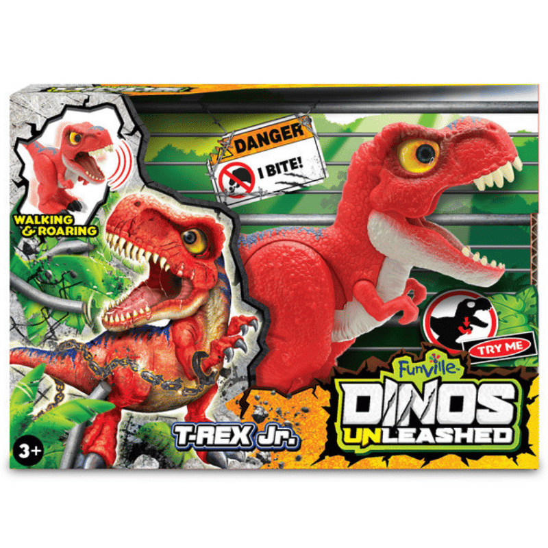 Matkusta takaisin jurakaudelle, jolloin dinosaurukset hallitsivat maailmaa! Varo T-Rexiä, joka kävelee, karjuu ja yrittää jopa purra sormiasi. Varo sormiasi! tömistelee menemään! Dinosauruksella on pehmeä häntä ja aidonnäköiset vaanivat silmät.