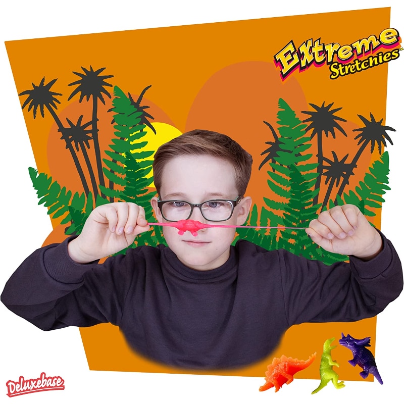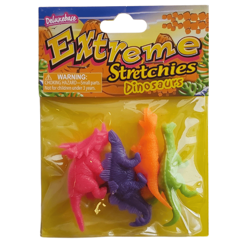 - Hauskoja pehmeitä dinosaurus puristeluleluja, joita voi venytellä joka suuntaa ja puristella. Lievittää stressiä. Pakkauksessa on on neljä dinosaurusta.
