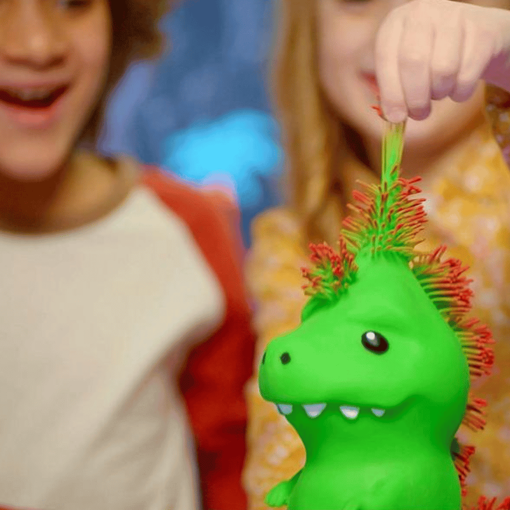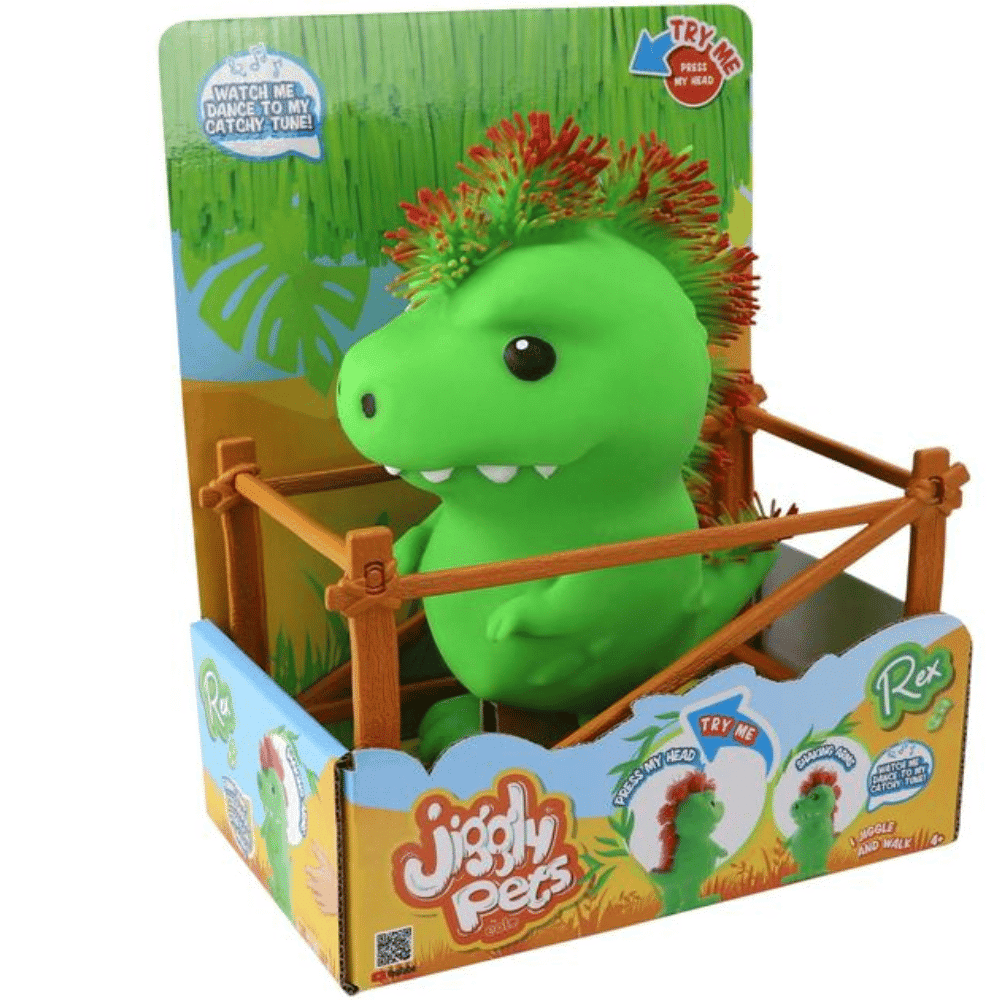 Jiggly Pets Dino tanssii kuin viimeistä päivää! Hulvaton dinosaurus tanssii musiikin tahdissa, karjuu ja heiluttaa harjaansa, kun taputat sitä päästä. Noin 16 cm kokoisella leikkidinolla on punainen venyvä harja, jota on hauska silitellä ja venytellä.