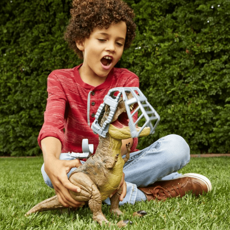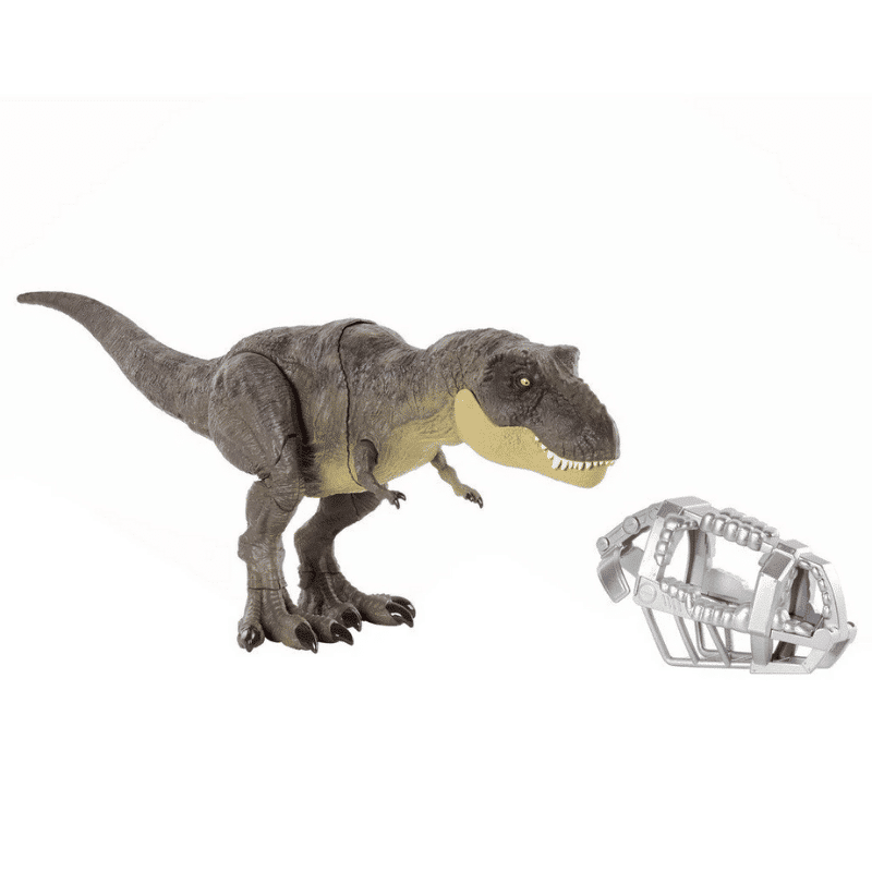 Jurassic Worldin legendaarisin hahmo T. Rex on nyt entistä rajumpi. Nappia painamalla se murtautuu ulos rajoittimestaan ja karjuu niin, että koko viidakko raikuu! Myös jalat tömisevät aidonoloisesti.