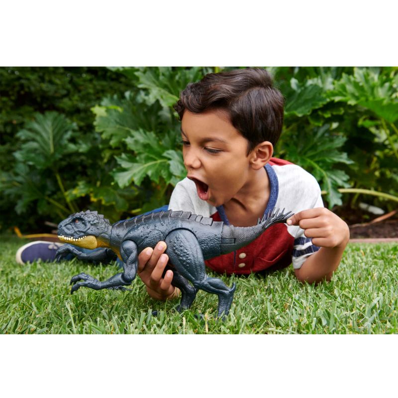 Netflix sarjasta tuttu Jurassic maailman uusin ja uhkaavin dinosaurus on nyt saapunut: Stinger-dino! Tämä ennalta arvaamaton hurjimus on 45 cm pitkä. Se ärjyy, lyö hännällään piiskaavia iskuja, liikuttaa käsiään, jalkojaan ja suutaan sekä raapii terävillä kynsillään. Sisältää kolmeAG13 (LR44)-TESTIparistot. Ikäsuositus: 4+ vuotta.