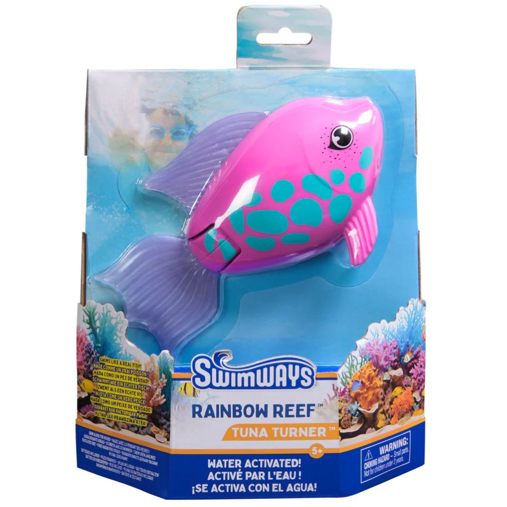 Tutustu Rainbow Reef Tuna Turner -lelukalaan, joka tuo vedenalaiset seikkailut suoraan kotiisi! Tämä värikäs ja eläväisen näköinen kala on suunniteltu liikkumaan sulavasti vedessä, tarjoten lapsille hauskoja ja interaktiivisia leikkihetkiä kylpyammeessa, uima-altaassa tai vaikka akvaariossa.
