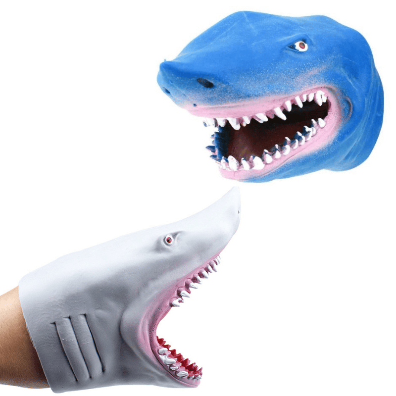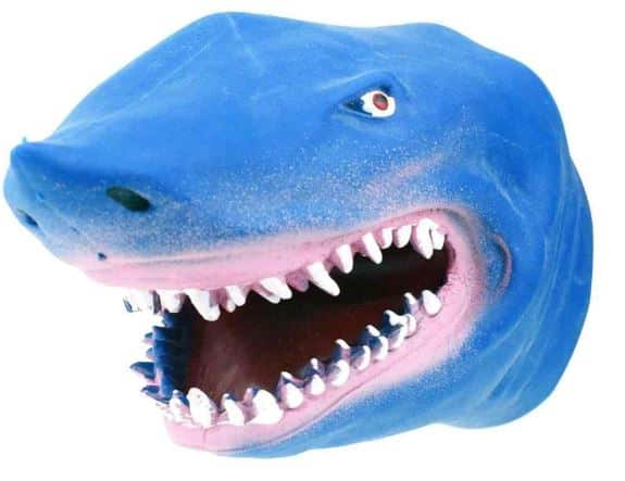 Mikä hain pää! Nihkeän nahkea hain pää, jonka sisälle voi työntää käden ja esittää pelottavaa.