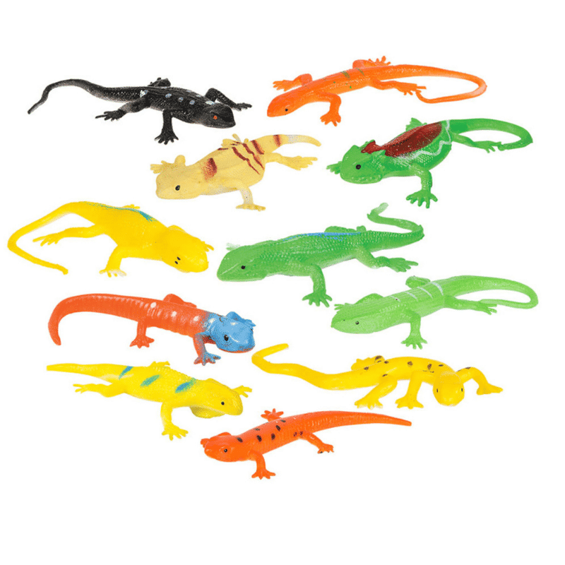 Lajitelmassa useita erilaisia ja erivärisiä hauskoja venyteltäviä venyviä liskoja.