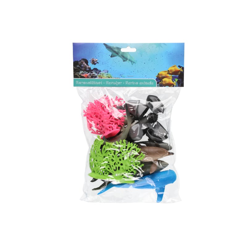 - Pakkauksesta löytyy mm. erilaisia kaloja, hai, delfiini, kiviä ja kasveja.