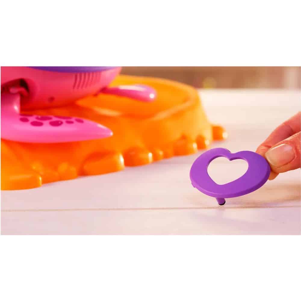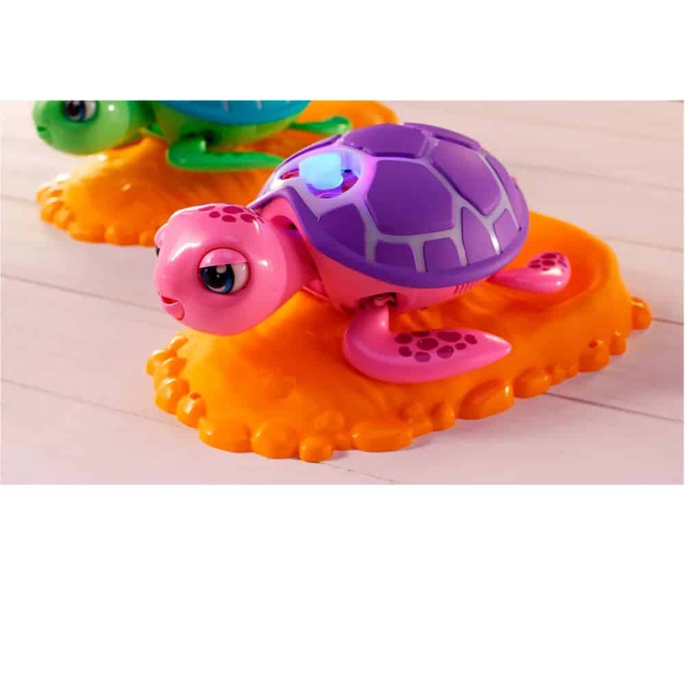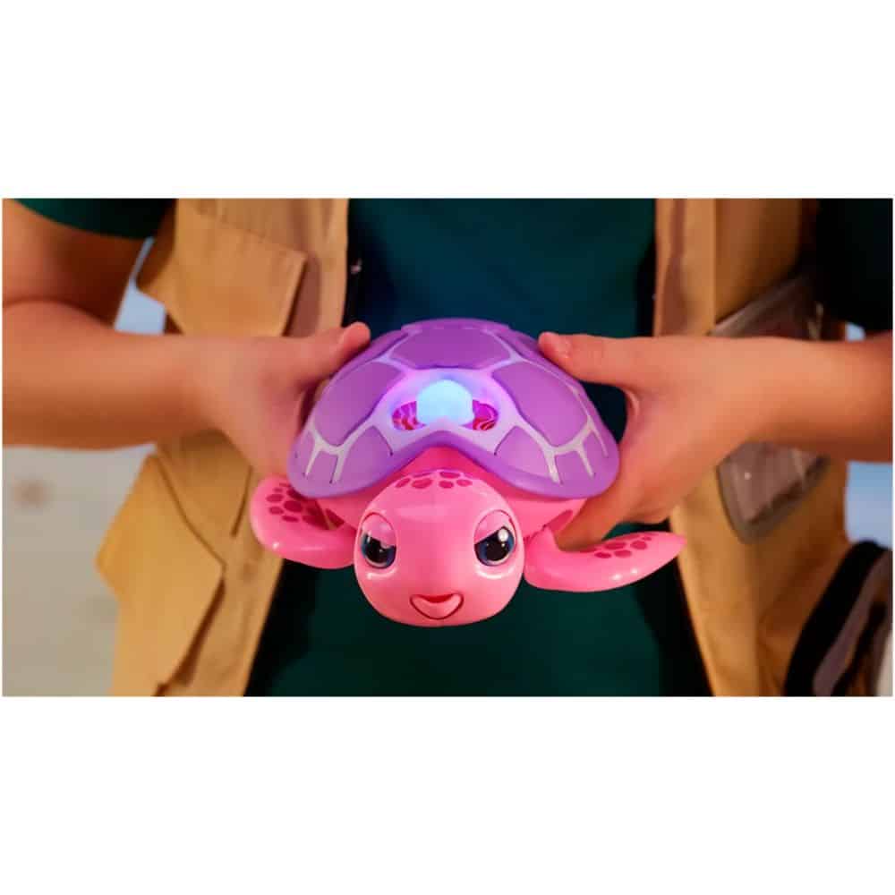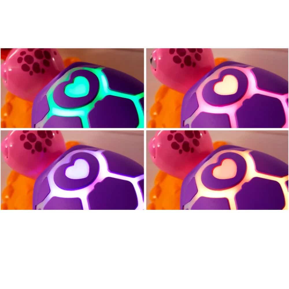 Kilpikonnan selässä on LED-valosydän, joka kertoo värein, onko kilpikonna nälkäinen, väsynyt, surullinen vai iloinen. Hoivaa sitä huolellisesti niin se palkitsee hoitajansa yllätyksellä. Kun hoivaat ja silittelet kilpikonnaa, saat sen tuntemaan jälleen olonsa turvalliseksi. Se munii kolme pientä munaa joiden sisältä löytyy suloiset ja pienet kilpikonnavauvat.