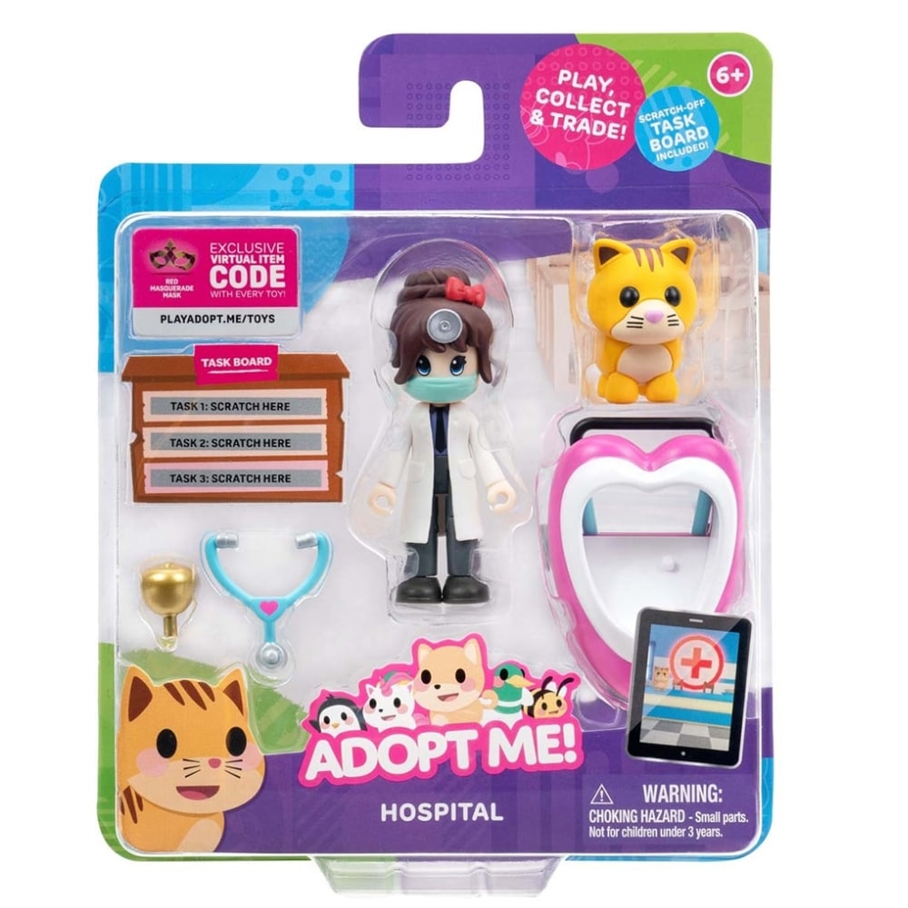 Adopt Me! sairaala – Ihastuttava figiuuripakkaus sisältää lääkärin, kissan, rattaat ja lääkärin välineet. Figuurit ovat tuttuja videopelistä ja niiden keräily on todella hauskaa. Kerää kaikki hahmot ja pidä hauskaa.